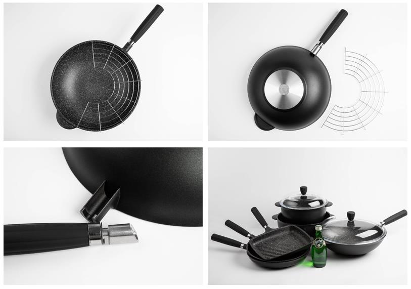 粘涂层来自Whitfore(华福公司)不含PFOA助剂,山毛榉木质锅柄,轻松耐用,舒服防滑。公司设计Julienne、 Granit和Titanio系列以不同的侧重点满足消费者需求。