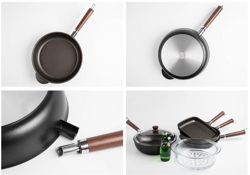 粘涂层来自Whitfore(华福公司)不含PFOA助剂,山毛榉木质锅柄,轻松耐用,舒服防滑。公司设计Julienne、 Granit和Titanio系列以不同的侧重点满足消费者需求。